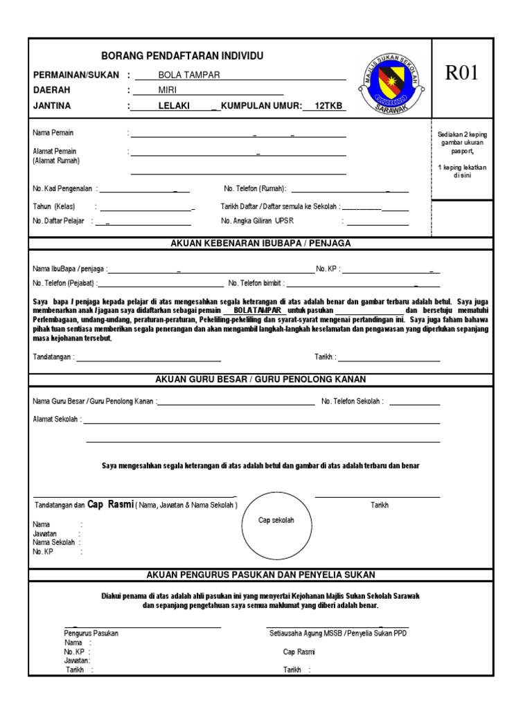 Borang Badminton Mss Sarawak Kokurikulum Sk Jalan Haji Baki