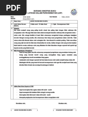 Borang Sinopsis Buku Latihan Dalam Perkhidmatan Ldp