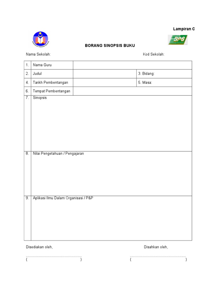 Borang Sinopsis Buku Latihan Dalam Perkhidmatan Ldp