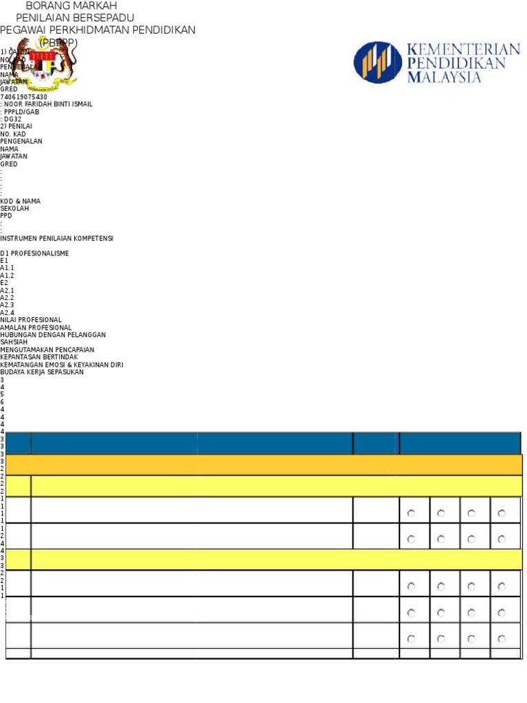 Borang Markah Penilaian Bersepadu Pegawai Perkhidmatan Pendidikan Pbppp