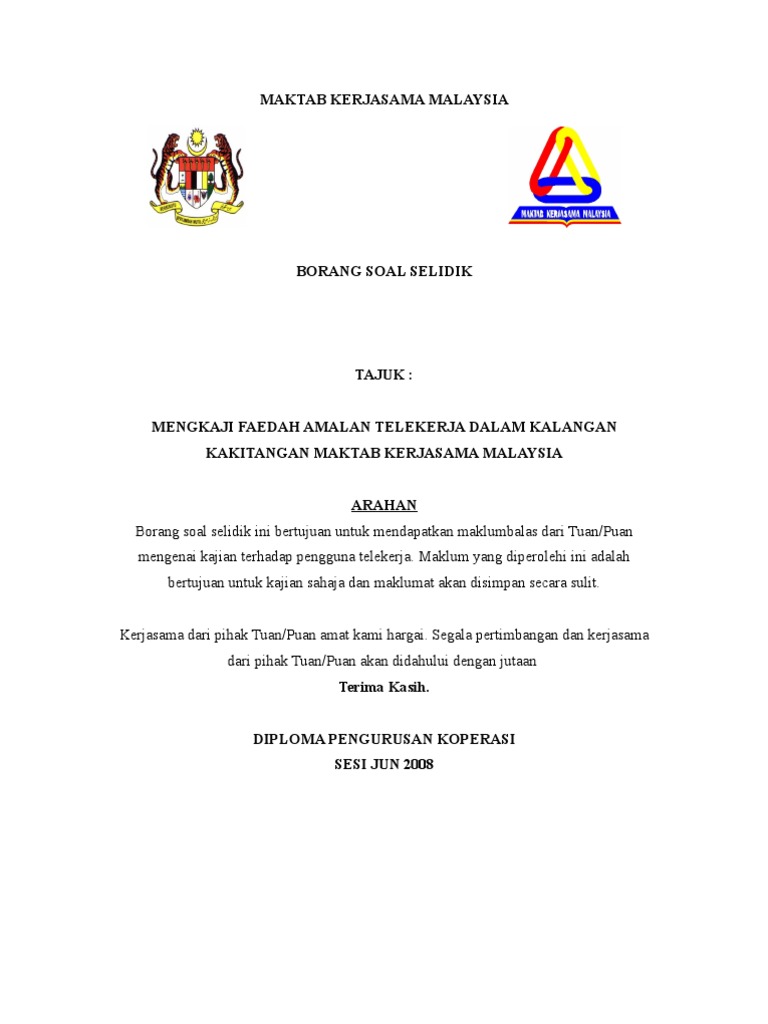 Contoh Borang Soal Selidik Penggunaan Ict Di Sekolah Jawat Koso