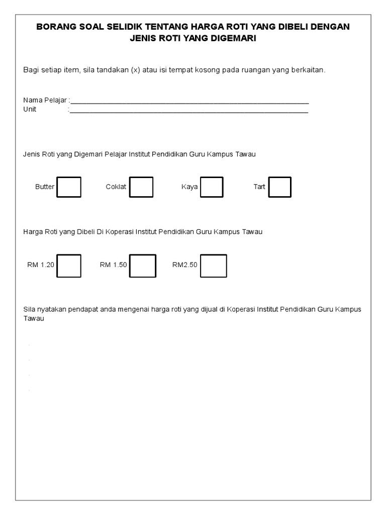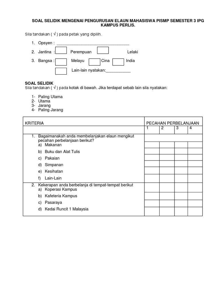 Contoh Borang Soal Selidik Menggunakan Skala Likert Rasmi Ro