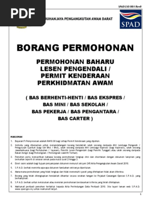 Borang Permohonan Baharu Lesen Pengendali Permit Kenderaan Pdf Document
