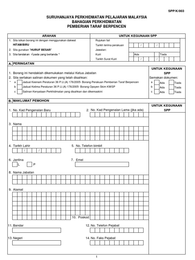 Borang Taraf Berpencen Spp