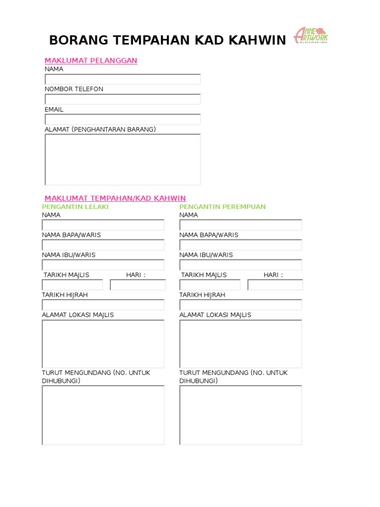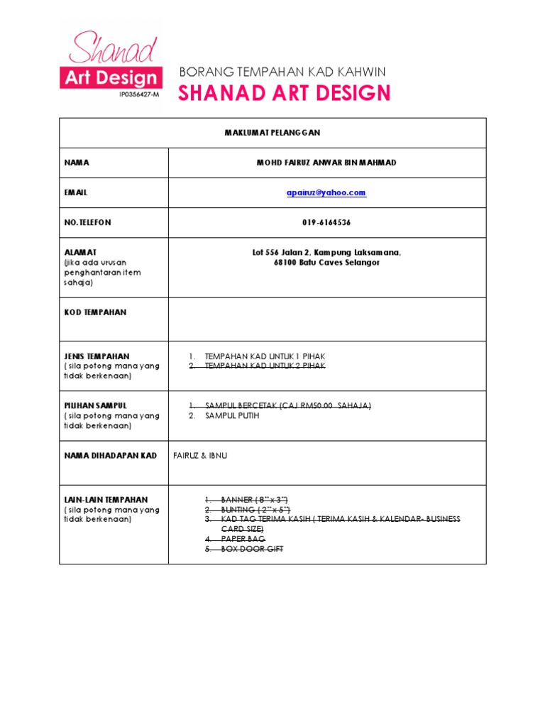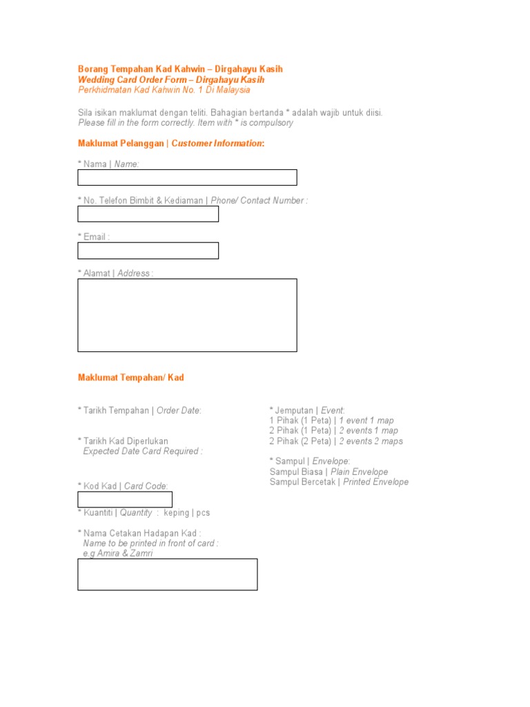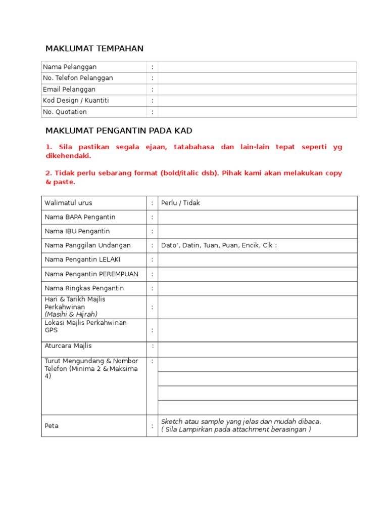 Borang Tempahan Kad Kahwin Pdf Free Download
