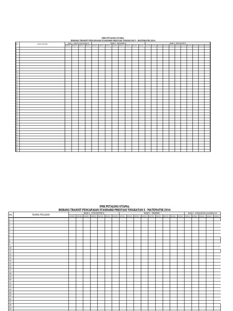 Templat Pelaporan Pbd Tingkatan 3 Matematik