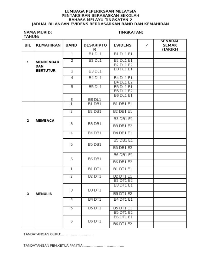 Borang Senarai Semak Standard Prestasi Pbs Pai Tingkatan 2 2013