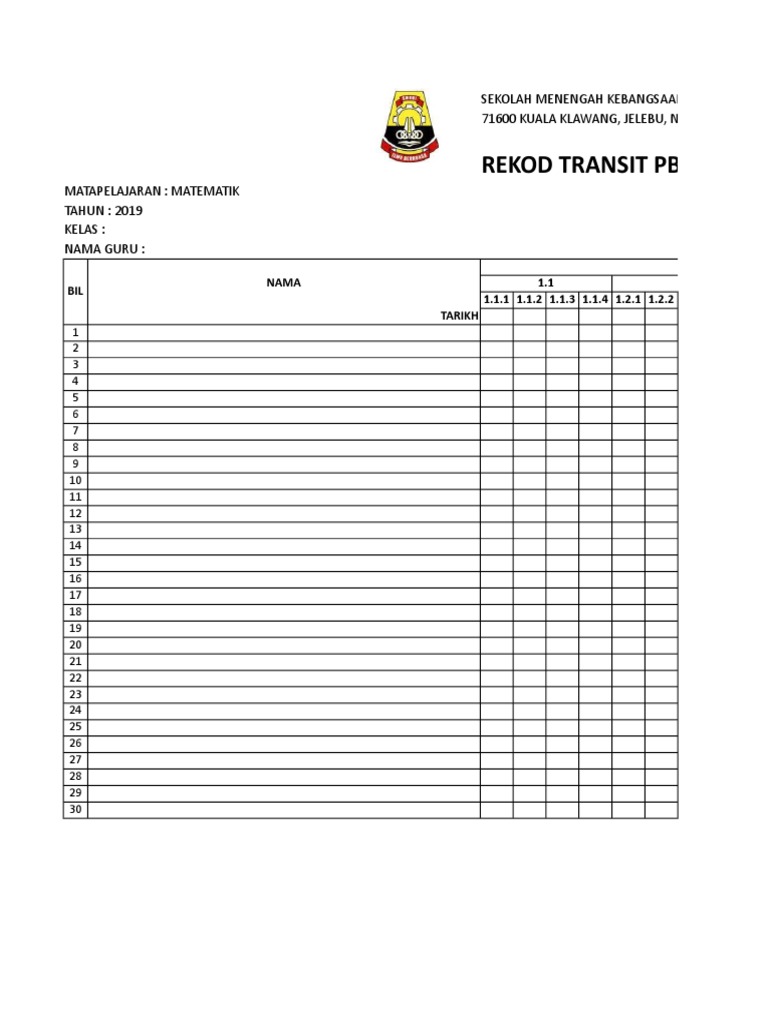 Rekod Transit Pbd Matematik Ting 1 3 Kssm