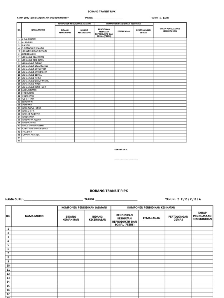 Rekod Transit Pendidikan Kesihatan Tahun 3 Kosong Pdf Document