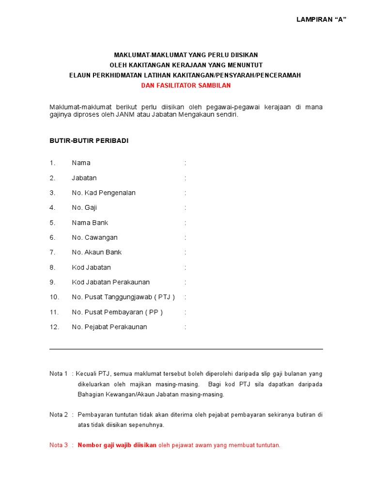 Borang Tuntutan Penceramah Bukan Penjawat Awam