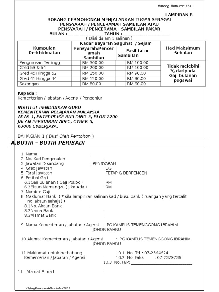 Borang Tuntutan Penceramah Institut Latihan Kehakiman Dan