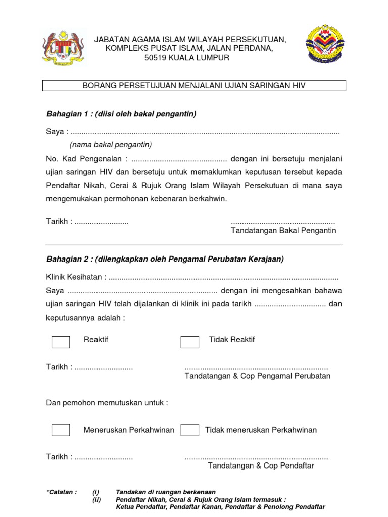 Sis Nuha Auf Twitter Kita Anak Dara Ni Semua Wajib Jalani Ujian Saringan Hiv Sbb Result Dari Hiv Test Ni Perlu Disediakan Bersama Borang Nikah Other Documents