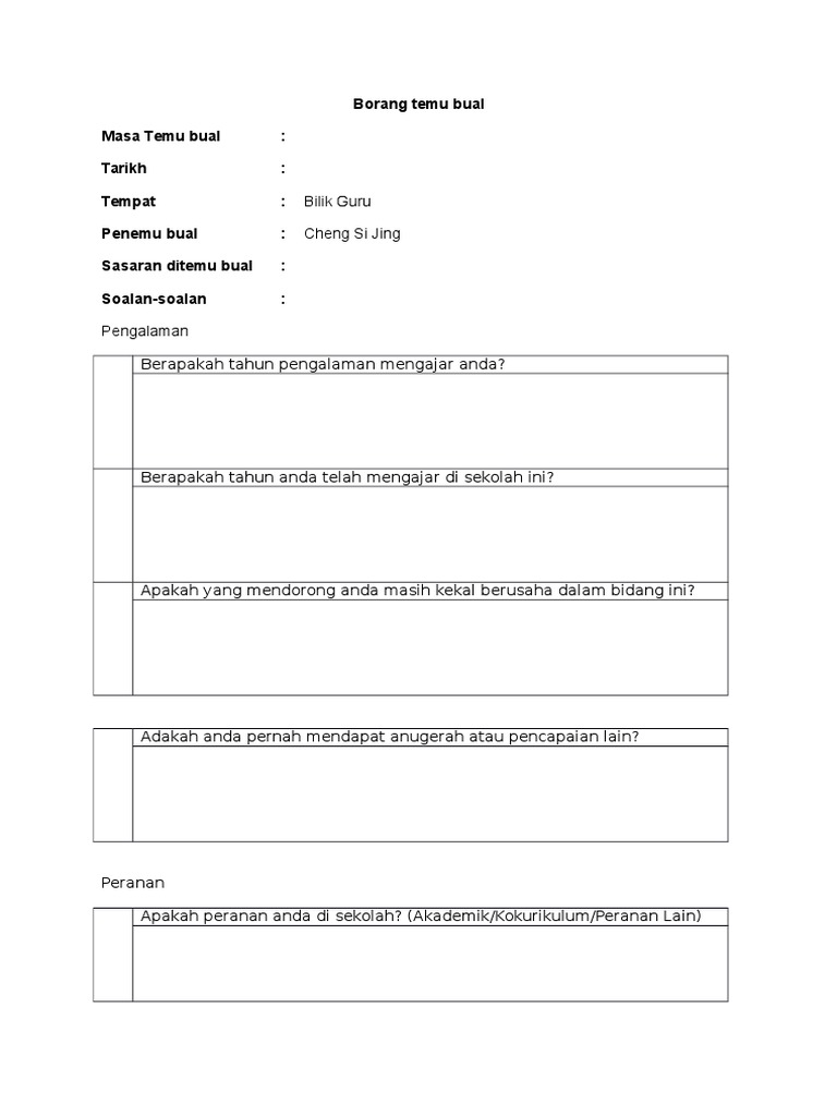 Borang Temu Bual Masa Temu Bual Tarikh Tempat Penemu Bual Sasaran Ditemu Bual Soalan Soalan