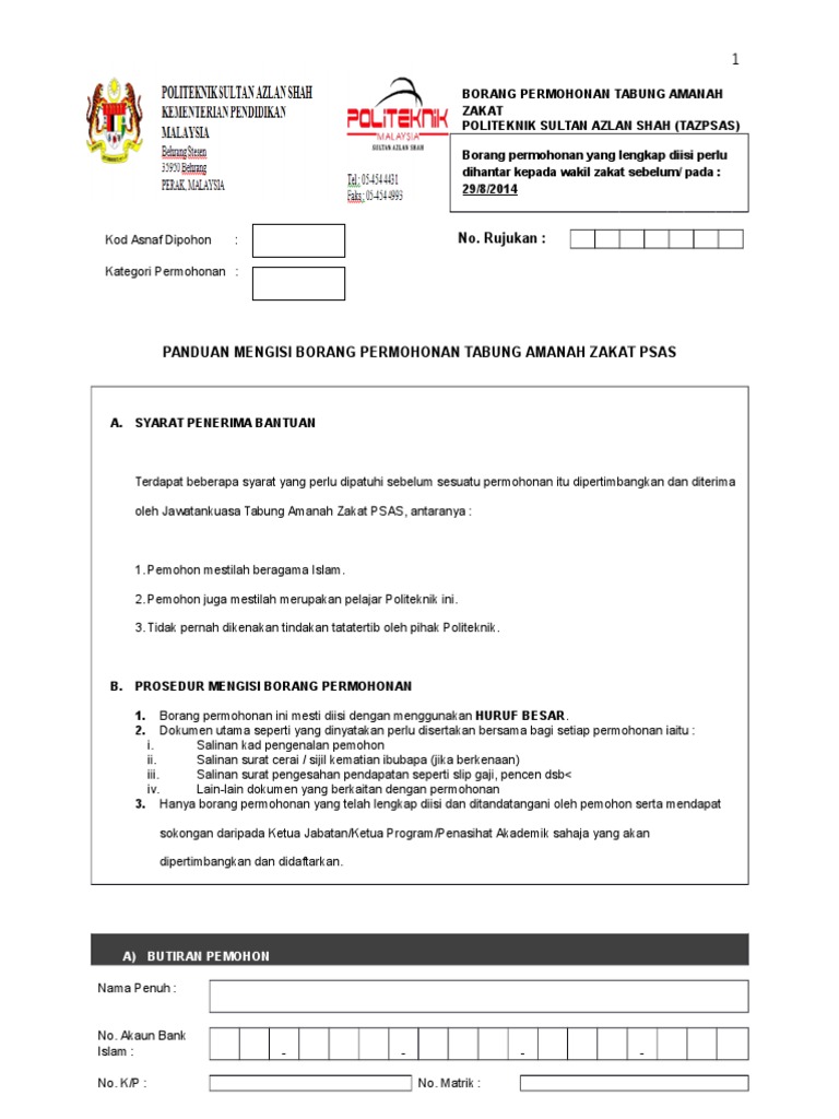 Pdf Borang Permohonan Agihan Zakat Abd Aziz Academia Edu