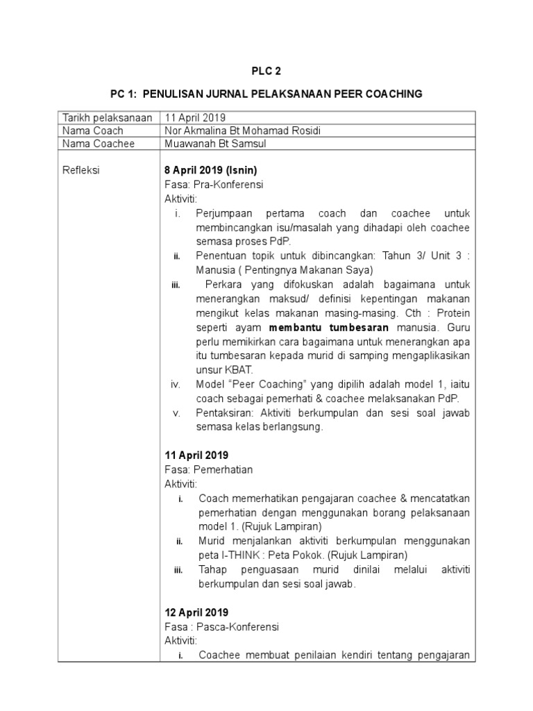 Plc 2 Pc 1 Penulisan Jurnal Pelaksanaan Peer Coaching Ii Iii