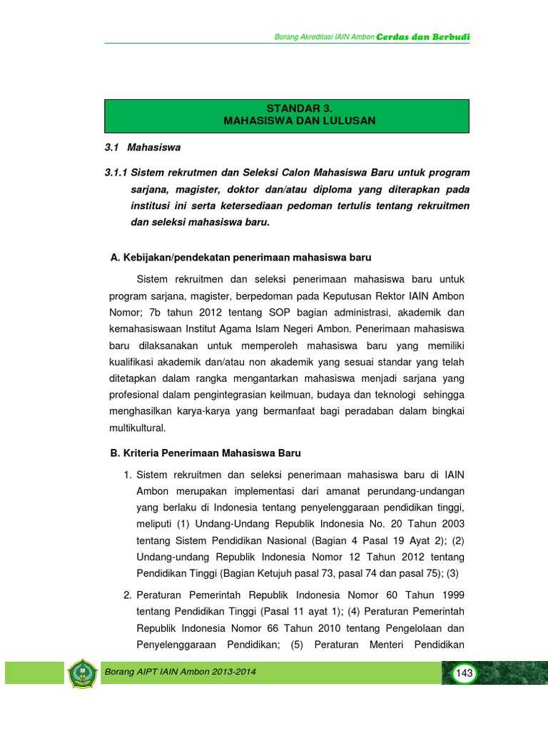 Borang Akreditasi Standar 3 Mahasiswa Dan Lulusan