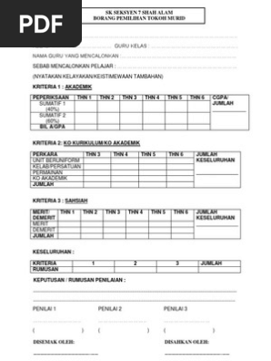 Contoh Borang Penilaian Kecemerlangan Guru