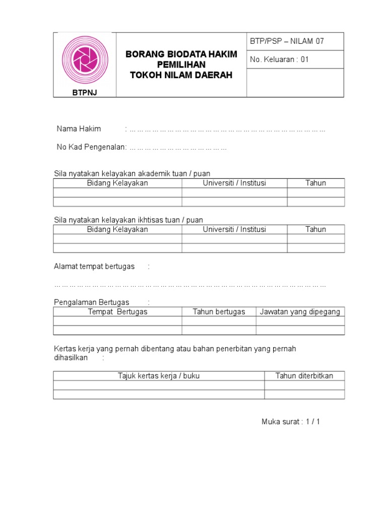 Contoh Borang Biodata Tokoh