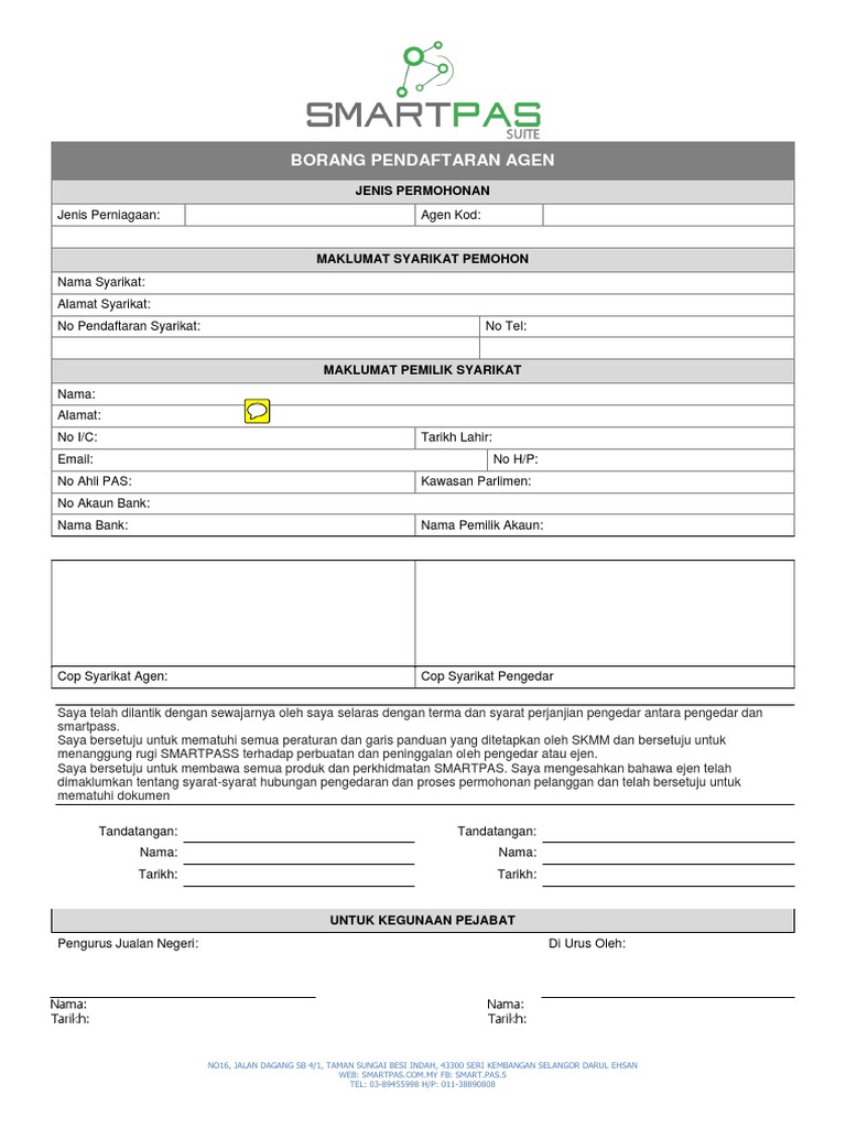 Contoh Borang Daftar Agen