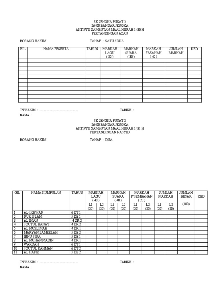 Contoh Borang Hakim Pertandingan Azan