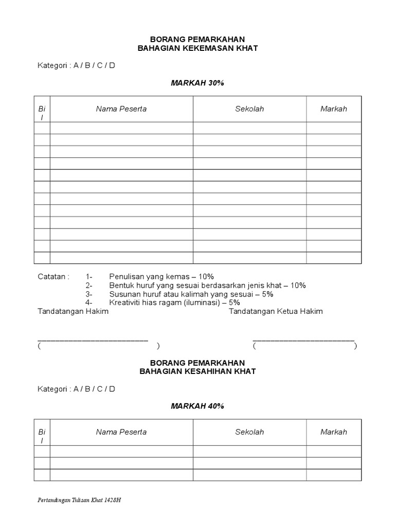 Borang Pemarkahan Khat