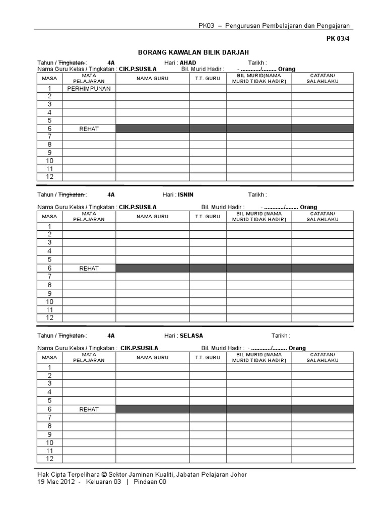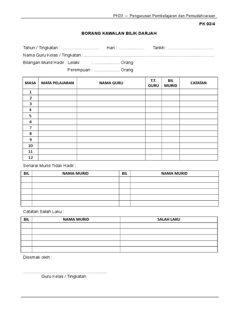 Pk03 4 Borang Kawalan Bilik Darjah