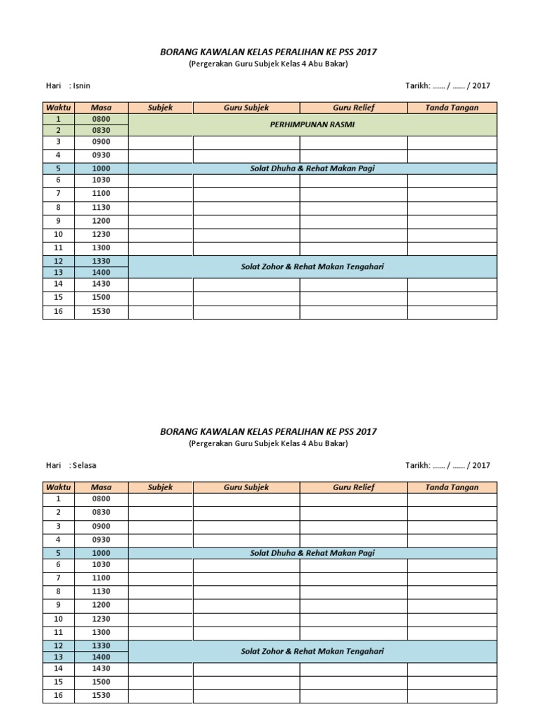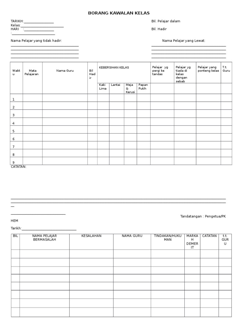 Borang Kawalan Kelas Waktu Pdp Tahap 1 Doc