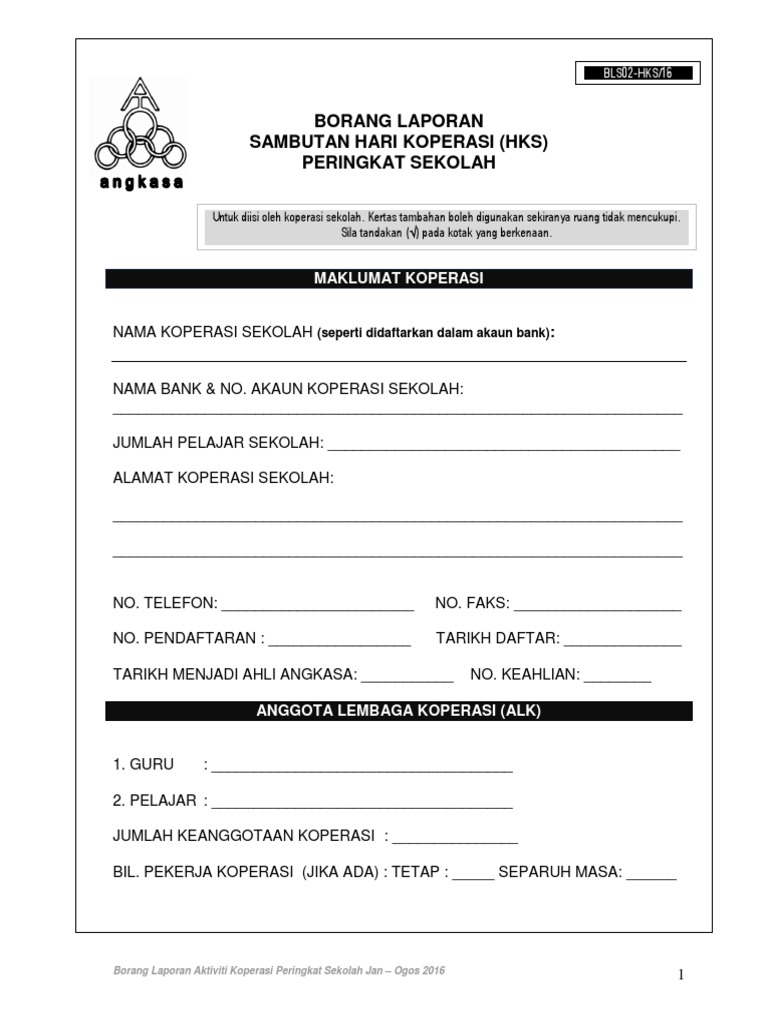 Borang Laporan Sambutan Hari Koperasi Hks Peringkat Sekolah