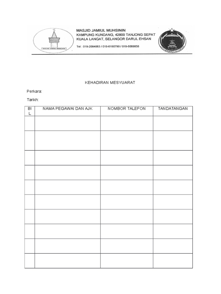 Format Rekod Kehadiran Mesyuarat Docx