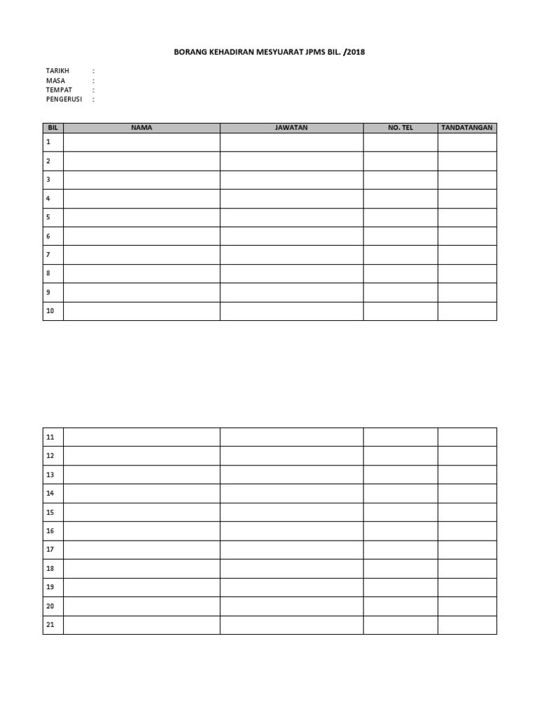 Contoh Borang Kehadiran Mesyuarat Docx