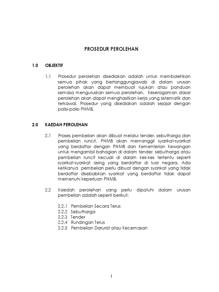 Prosedur Perolehan Pnmb 2008 Pind 2009