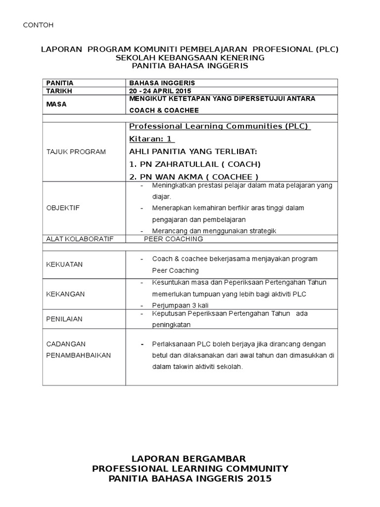Splgskbj Contoh Laporan Plc Teacher Sharing Dan Jurnal Peer Coaching