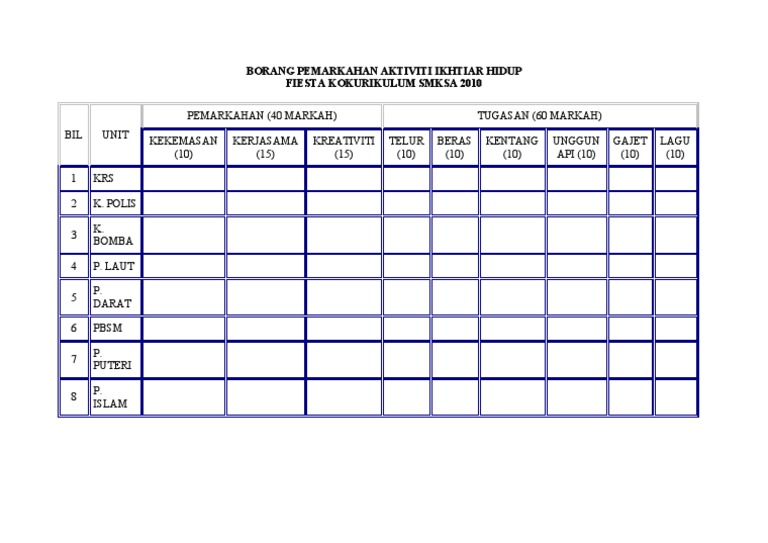 Borang Penilaian Kegiatan Kokurikulum Contoh Borang Penilaian
