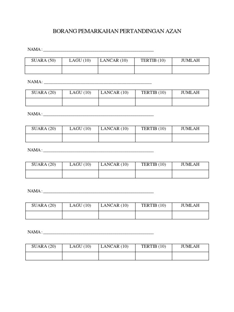 Borang Pemarkahan Pertandingan Azan