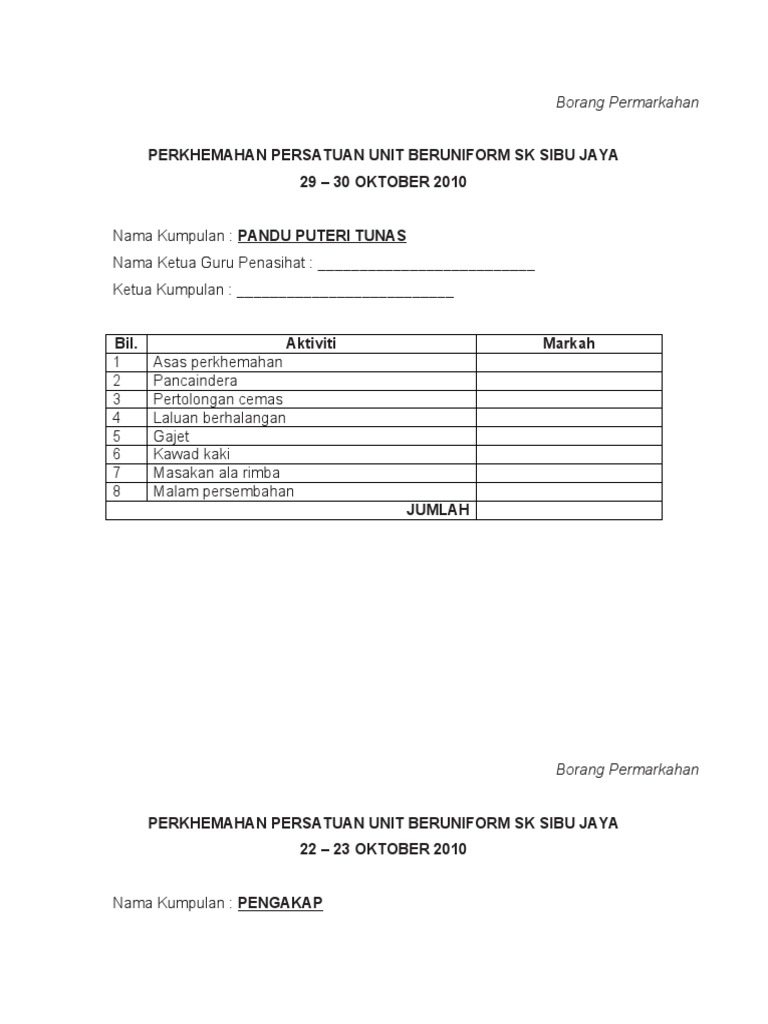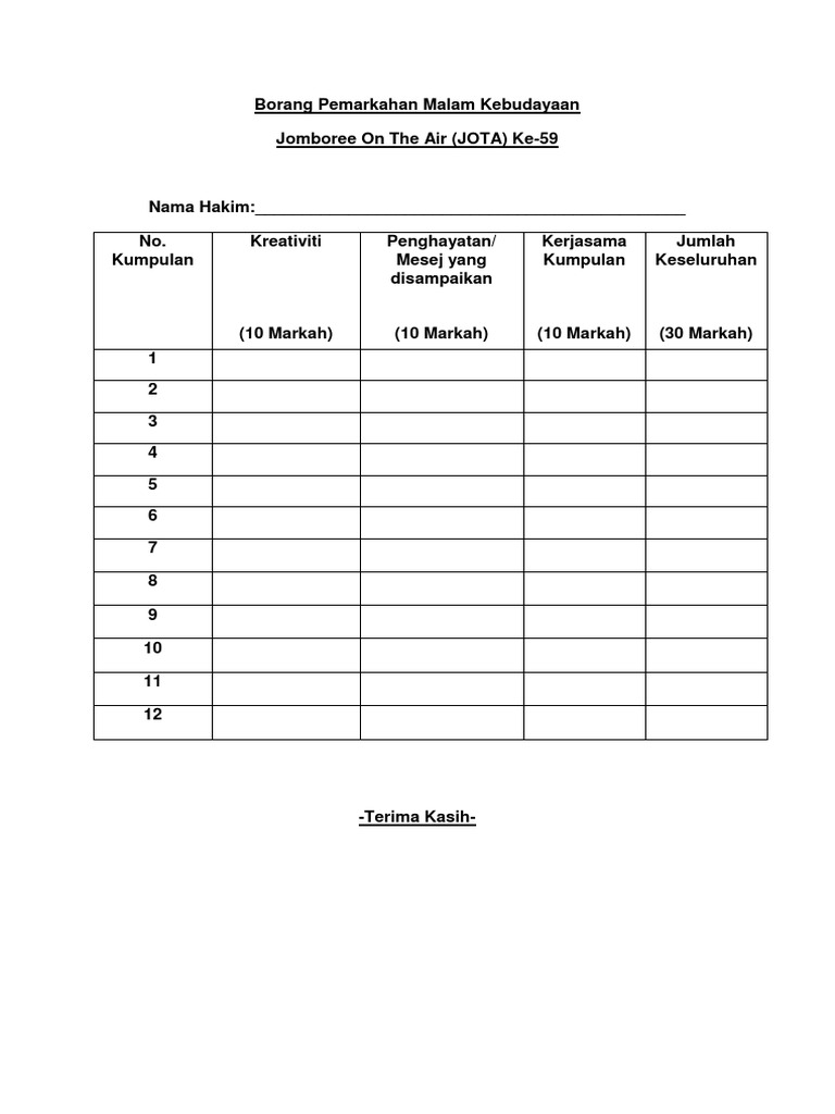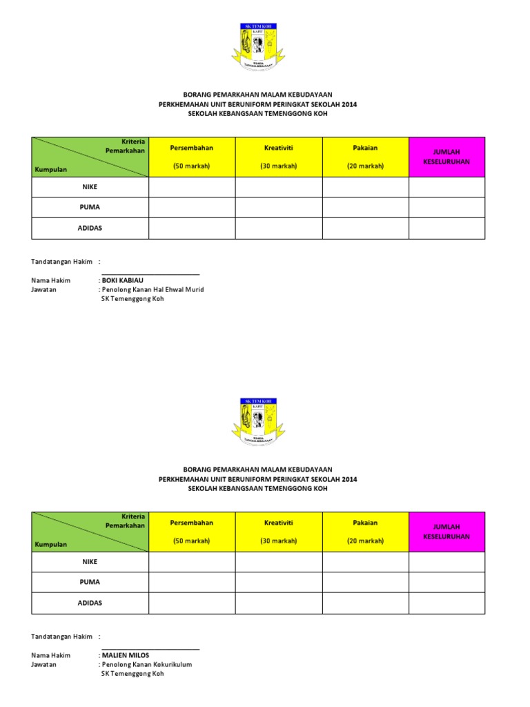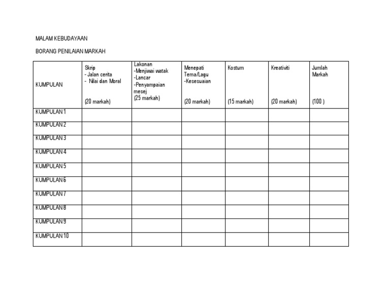 Borang Pemarkahan Malam Kebudayaan Download Documents
