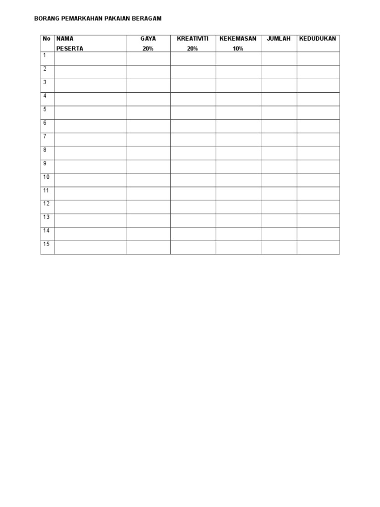 Borang Markah Pertandingan Pakaian Beragam Docx Docx Document