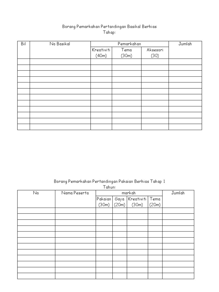 Borang Penilai Pertandingan Basikal Berhias Docx Document