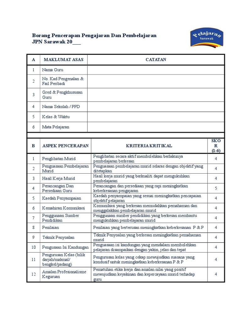 Doc Instrumen Pencerapan Pembelajaran Dan Pengajaran Mohammed Yusoff Zainal Abidin Academia Edu