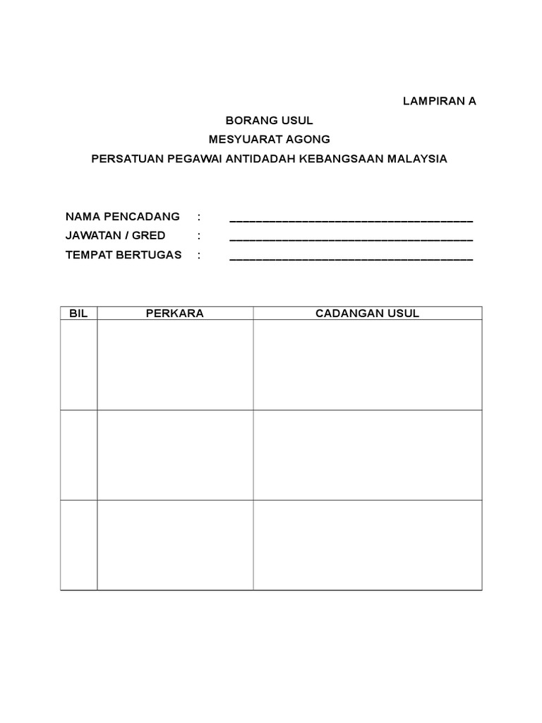 Borang Usul Borang Kehadiran Mesyuarat Agung Ppad 2016