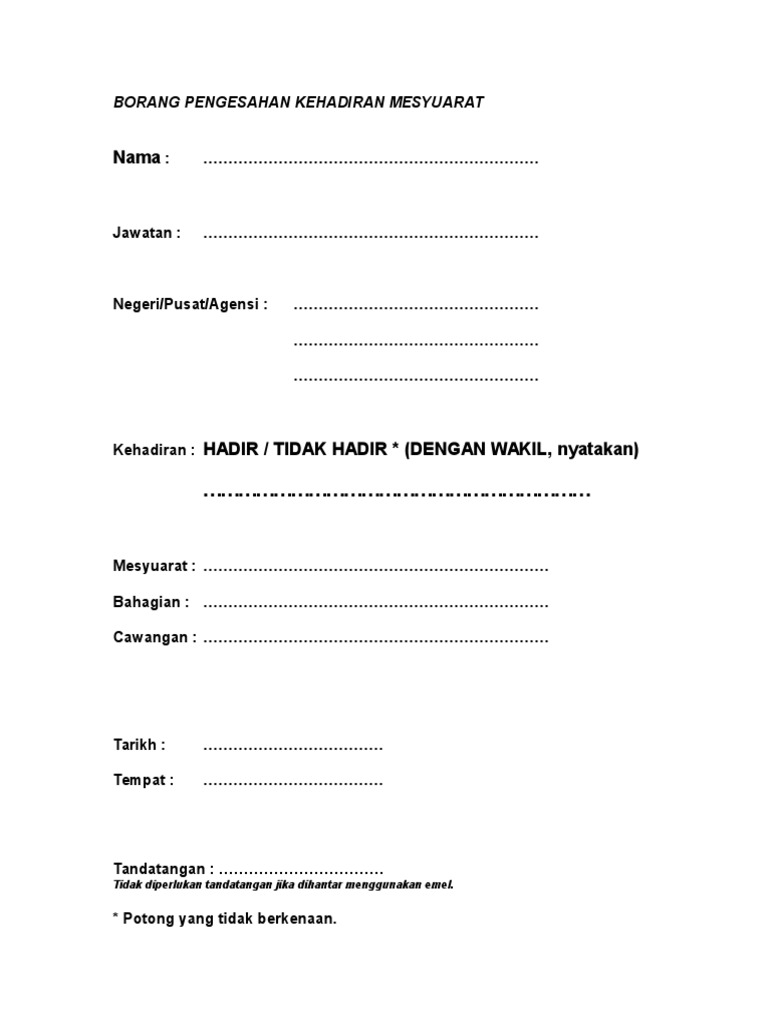 Contoh Borang Pengesahan Kehadiran Mesyuarat