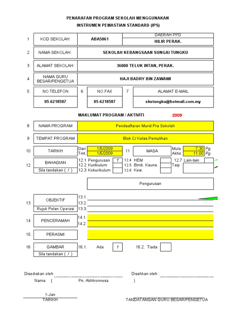 Contoh Borang Data Kokurikulum Pdf Document