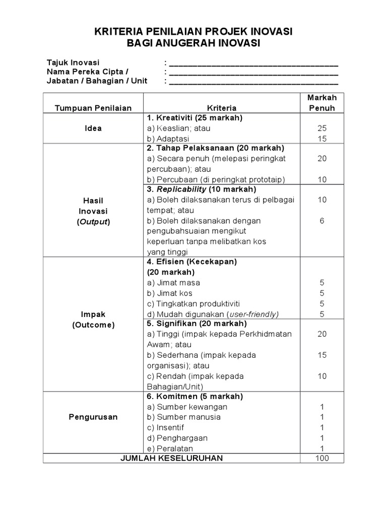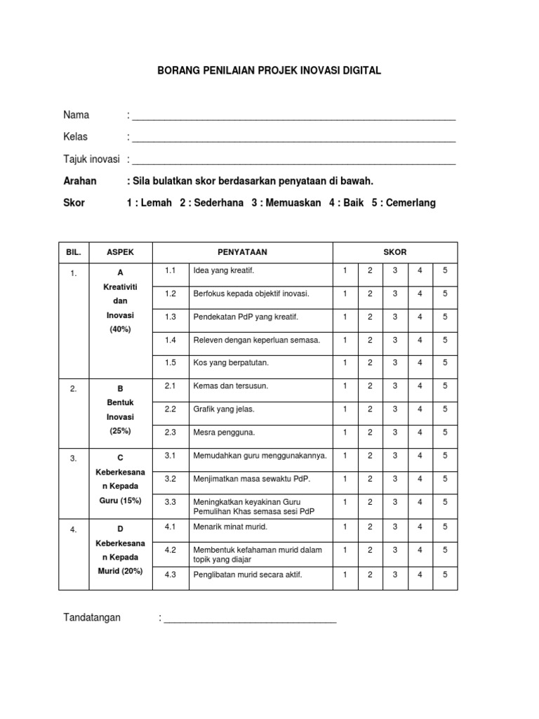 Pdf Borang Penilaian Projek Inovasi 2015 Edit Farizzizzuan Busri Academia Edu