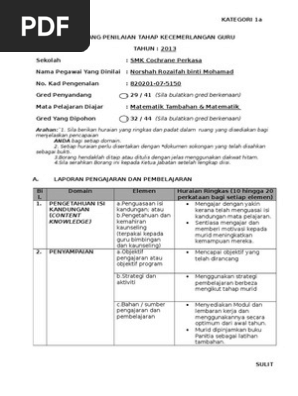 Doc Borang Penilaian Tahap Kecemerlangan Guru Borang Kategori 1b Guru Nor Asmah Awang Academia Edu