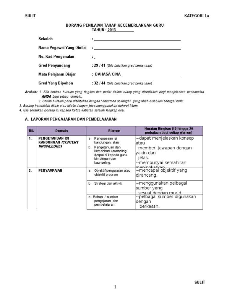 Borang Penilaian Tahap Kecemerlangan Guru Kategori 1b Pon