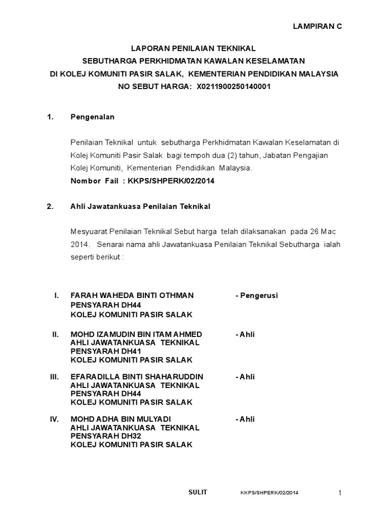 Contoh Laporan Jawatankuasa Penilaian Harga Jawkosa