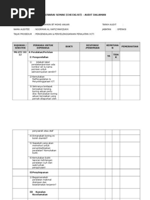 Audit Checklist Pengedalian Penyelenggaraan