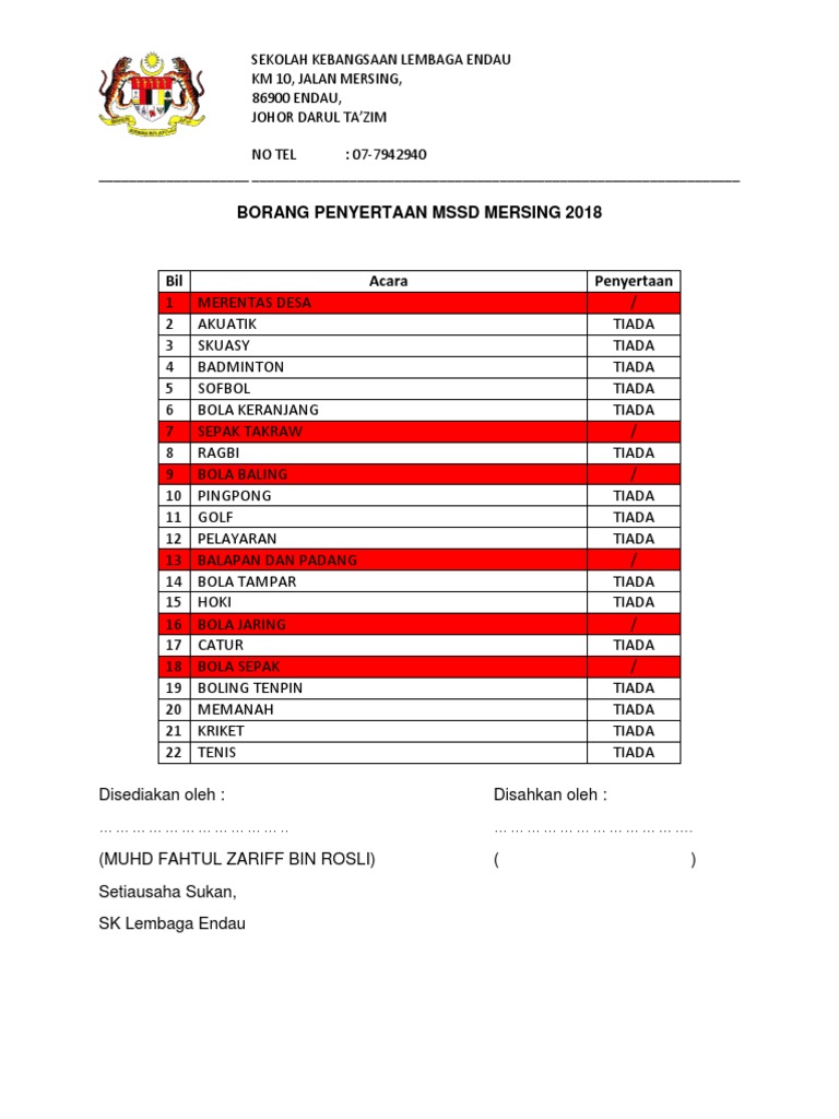 Borang Penyertaan Mssd Sk Lembaga Endau Docx