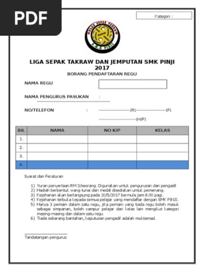Liga Sepak Takraw Tertutup Smk Pinji 2015 Borang Penyertaan S3