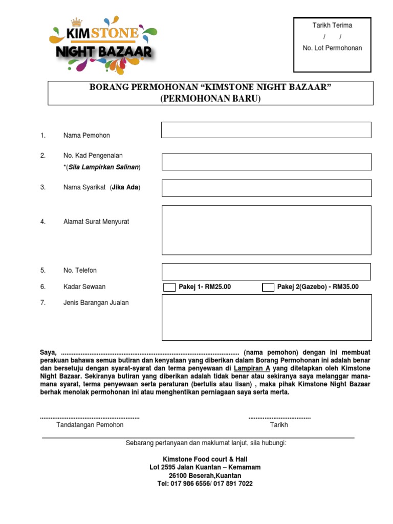 Contoh Borang Gerai Jualan