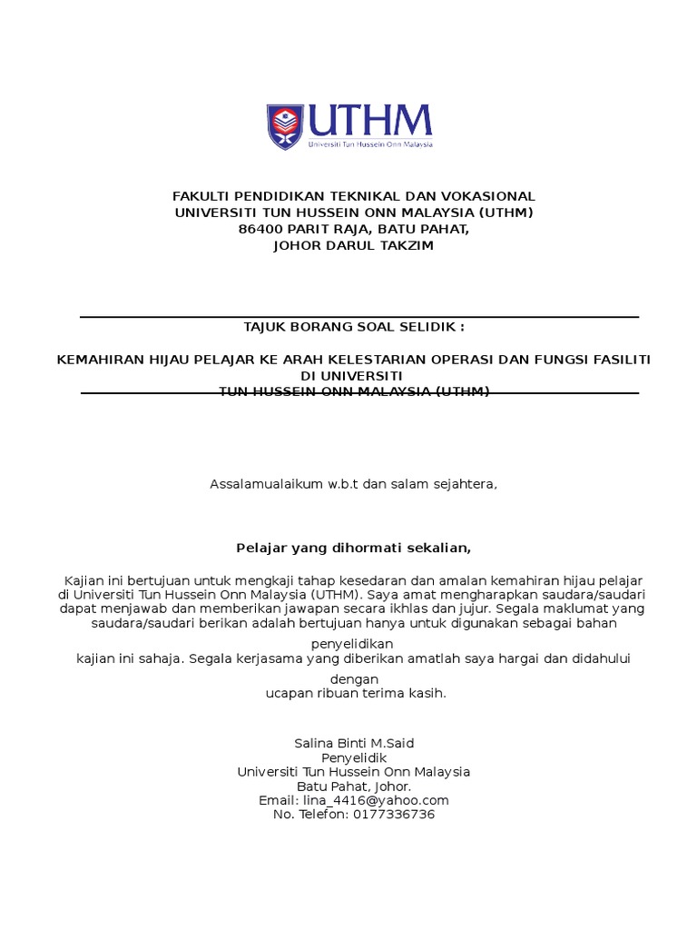 Borang Soal Selidik Kos Sara Hidup Pelajar Borang Soal Selidik Kajian Mengenai Kos Sara Hidup Pelajar Universiti Malaysia Terengganu Umt Dalam Masa Course Hero